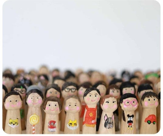 あらかじめ用意した、手のひらサイズのこけしの形をした木に、似顔絵を彫ります。顔を彫り、体部分に動物や食べ物、お名前など好きなモチーフを彫り、色を塗ったら完成。約30分ほどでできあがるので、作っている間はその場で見守るもよし、お買物を楽しむもよし。