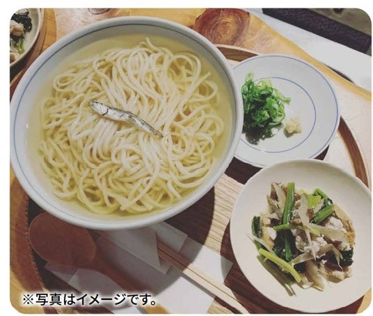 いりこうどん(1人前)800円[各日販売限定数150]※4月11日(金)・12日(土)は、中華そばでの提供になります。 いりこ定食(1人前、いりこめし・味噌汁・煮物とおかず)1,500円[各日販売限定数30]