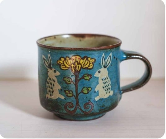 角コーヒーカップ(大)青花うさぎ (約口径8.2×高さ7.7cm)3,080円