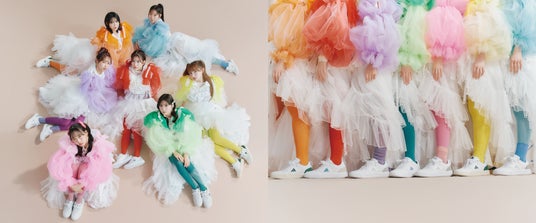 メンバーそれぞれが“自分色”の靴箱に入ったビジュアルでは、スニーカーにインスパイアされたオリジナル衣装も初披露。まるで新しいシューズを箱から取り出した瞬間のような、ワクワクとドキドキを表現しています。
