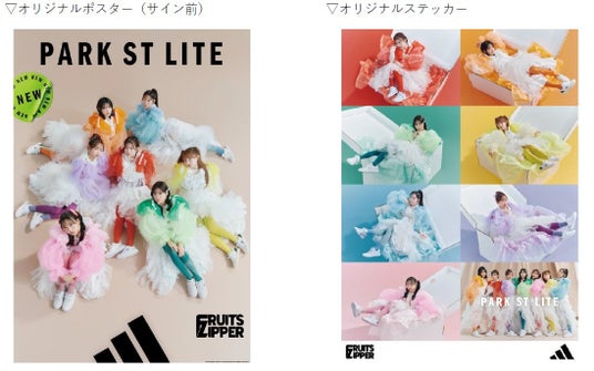 ABC-MARTの一部店舗とオンラインストアにて、アディダス「PARK ST LITE」「ACE LITE」をご購入された方を対象に、アプリにて抽選で10名の方にFRUITS ZIPPER メンバーによるサイン入りコラボポスターをプレゼントします。また、ご購入者先着順でオリジナルステッカーもご用意しています。