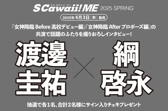 映画『女神降臨 Before 高校デビュー編』『女神降臨 After プロポーズ編』での共演が話題の渡邊さんと綱さんを撮りおろしインタビュー! 映画の内容にちなんだ「モテ(ハート)エピソード」や「美容法」もお聞きしてきました! 各1名、合計2名様にサイン入りチェキプレゼントもありますので、ご応募お待ちしております。