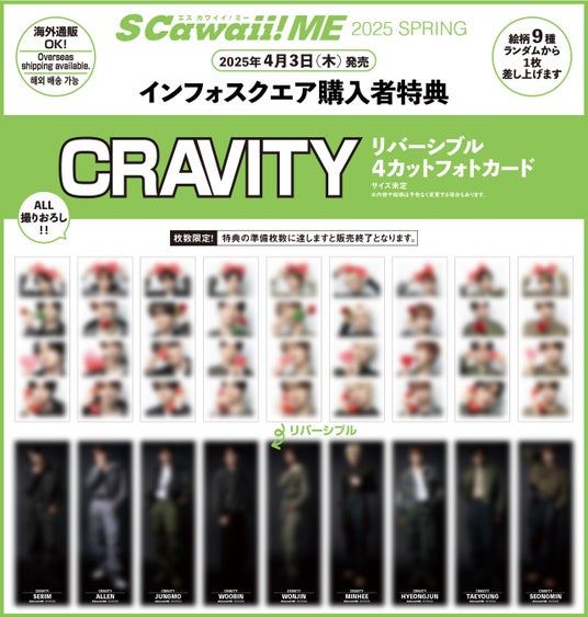 下記URLからお求めいただくと、CRAVITYの購入者特典「4カットフォトカード」を9種類からランダムで1枚差し上げます。