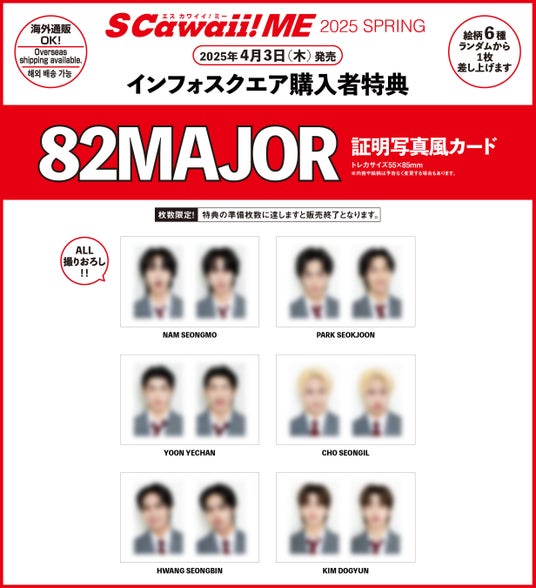 韓国のコンサートのチケットが即完売&追加公演開催、日本のコンサートも半年前の来日から観客動員数が2倍増!と、人気急上昇中の韓国のボーイズグループ82MAJORが日本の雑誌に初登場! 平均身長181cmから繰り出される撮りおろしビジュアルは必見です! その圧倒されるビジュアルとは裏腹に、スタジオではスタッフとすれ違うたびに笑顔で「こんにちは」「よろしくお願いします」と元気よく挨拶してくださったメンバーの皆さん。「日本のコンサートが大盛り上がりでしたね!」とお伝えすると、はにかみながら「ファンの皆さんがとても素敵なんです」と日本語で答えてくださいました。12名様にサイン入りチェキもプレゼントもありますのでお楽しみに!