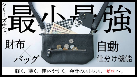 「tri(トリ)」は、財布とサコッシュが融合した財布一体型サコッシュ。お金はもちろん、スマホ・鍵・お札・小銭・カード…出かけるときの必需品がすべて収納OK!これひとつで、どこへでも行ける仕様です。「自動仕分け機能」により、お札と小銭を一緒に入れるだけで、内部構造が自動的に分類。ストレスフリーな支払いをサポートします。