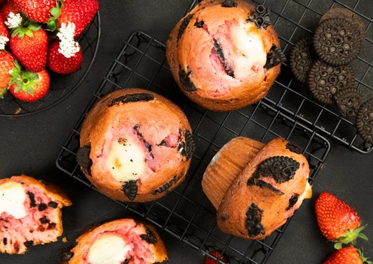 甘酸っぱい苺のつぶつぶ果肉がしっかりと感じられ、ジューシーな味わいが口いっぱいに広がる、贅沢なマフィンです。