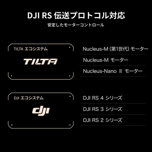 DJIエコシステムとの互換性:DJI RSシリーズとの接続を強化し、DJIフォローフォーカスモーターをNUCLEUS-M IIのシステム内で制御可能。