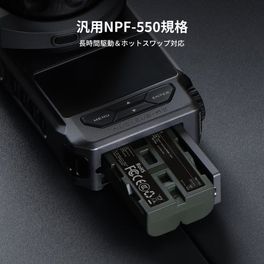 NPFバッテリー対応:一般的なNPF-550バッテリーを採用し、長時間撮影をサポート。