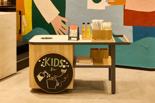 同店では、お子さまにもスターバックスをお楽しみいただけるように3種類の『キッズ フラペチーノ(R)』をご用意し、店内利用の際は取っ手付きの樹脂製グラスで提供します。『キッズ フラペチーノ(R)』 は、クリーミーな味わいと、ホワイトチョコレート風味のまろやかな甘さを楽しめる『キッズ バニラ クリーム フラペチーノ(R)』に、マンゴーやトロピカルフルーツの甘酸っぱさとまろやかでクリーミーな味わいを同時に楽しめる『キッズ マンゴー & フルーツ フラペチーノ(R)』、チョコレートチップの食感が楽しい、チョコレートをクリーミーに味わえる『キッズ チョコレート フラペチーノ(R)』をお楽しみいただけます。また、親子でオリジナルのカスタマイズができる専用の「コンディメントバー」で、お気に入りの一杯を仕上げる “CRAFT”体験もしていただける他、フードをご注文の際は、お子様用のカトラリー(フォークとボウル)もご用意しています。ドリップ コーヒーやスターバックス ラテなど通常のメニューも、販売しております。