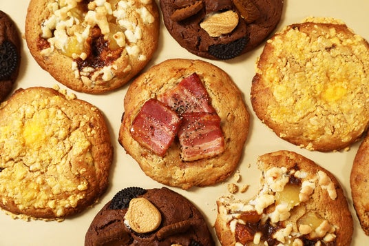 ドロッと溶けるマシュマロ。ジュワッと染み込むキャラメルソース。ゴロッと乗った厚切りのベーコン。夢のようなトッピングを、じっくり焼いたおっきなクッキーで。今日はカロリーを気にせずおやつでお腹いっぱいにしちゃおう。