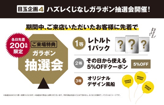 【目玉企画4.】1等はレトルト食品が当たる「ガラポン抽選会」を開催