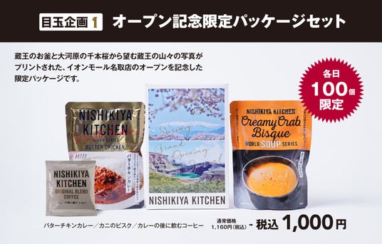 「世界の料理を『カンタン』に。」をコンセプトに掲げ、レトルトカレーを中心に販売するレトルト食品専門店NISHIKIYA KITCHEN(ニシキヤキッチン)(株式会社にしき食品 本社:宮城県岩沼市、代表取締役社長:菊池洋一)は、2025年4月18日(金)に約3年ぶりの新店舗である「ニシキヤキッチン イオンモール名取店」のオープンを記念し、4月22日(火)までの5日間限定で「ニシキヤキッチンオープン記念祭」を開催します。イオンモール名取店でしか買えない春らしい桜がプリントされた「オープン記念限定パッケージセット」、お得な「ランチバッグ付きオープン記念セット」をはじめ、工場見学でしか買えないグッズである「金のスプーン」の数量限定販売をします。また、ご来店いただいたお客様は、レトルト食品などが当たる「ガラポン抽選会」に無料で参加できます。さらにお子さまとご来店いただいた際には、オリジナルデザイン風船をプレゼントします。オープン記念祭の期間中に限らず、店内には試食専用コーナーを常設しており、人気商品などの試食提供も行います。