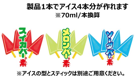 溶けてる、アイスキャンディ!?が帰ってきた!スイカバーが作れるシロップに新しい仲間が登場!『スイカバーの素』『メロンバーの素』『ソーダバーの素』