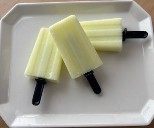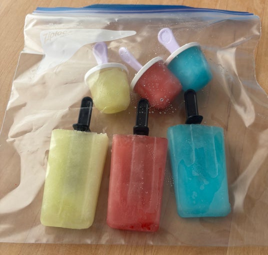 アイスキャンディの型を購入し、ジュースを使って色々なアイスを作りました。