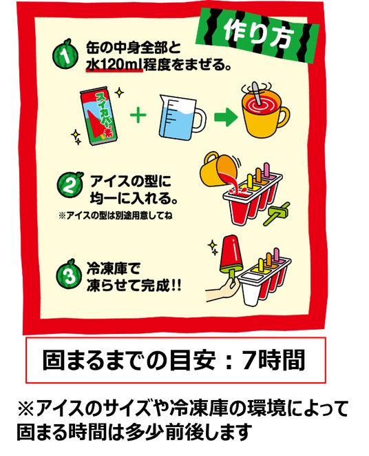 - 缶1本で通常のスイカバー、メロンバー4本分を作ることができる、コストパフォーマンスの高い商品です。