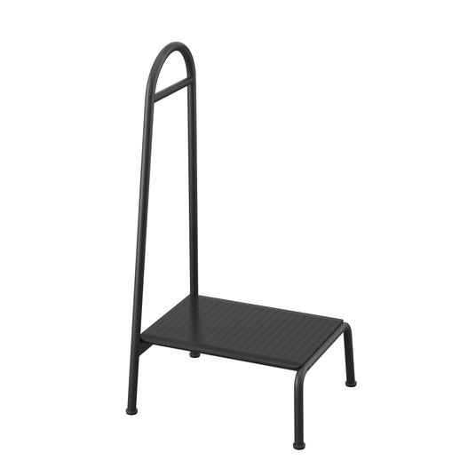 持ちやすい手すりによって、簡単に移動でき、上り下りの際にもサポートになります。手すりは、高い場所への手の届きやすさを改善し、リビングルームやダイニングルームなどでイスから立ち上がる際の補助としても役立ちます。この手すりはタオル掛けとしても使用可能で、機能性を兼ね備えています。ステップの表面とスツールの脚には滑り止め加工が施されており、安定性と安全性を提供します。