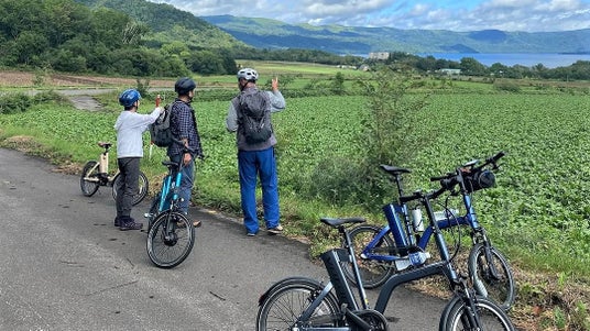 屈斜路湖や藻琴山(もことやま)を望みながら、電動アシスト自転車E-bikeに乗り、ガイド付きで