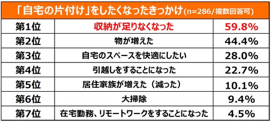 ◆「自宅の片付け」のきっかけは、収納スペースが十分ではないことが原因