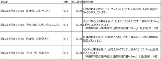 「肌のことを考えてつくった」シリーズは、おいしさだけでなく、肌に欠かせない栄養素と成分の補給を目的に開発しています。今回発売するグミでは、フルーツグミとして楽しんでいただくだけでなく、普段から不足しがちと言われている栄養素や成分を加えたグミにしています。