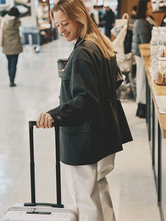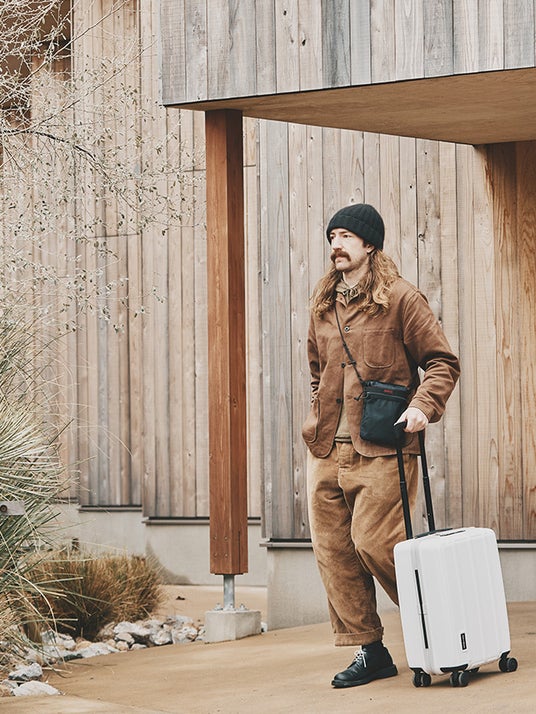 カラーはコラボレーション限定のホワイト。特殊な加工を施すことで、汚れや傷が目立ちにくく、マットな仕上がりに。2~3泊程度の旅に適した容量で、国内線(100席以上)の機内持ち込み対応サイズです。