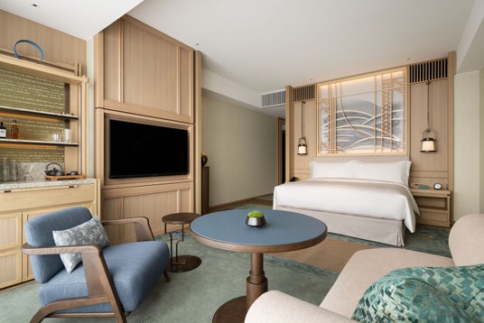 同ホテルの31階から38階に位置する客室は、46平米のデラックスルームから193平米のプレジデンシャルスイートまで、さまざまなルームタイプを兼ね備え、寛ぎのひとときをご提供いたします。客室のヘッドボードには和紙を背景にした、日本の伝統技法「組子細工」を施し、和の要素と「アールデコ」を組み合わせたデザインや細部までこだわったインテリアが洗練された芸術的な空間を演出します。天井まで続く窓からは、淀川、大阪湾と活気あふれる大阪の街並みを望むパノラマビューをお楽しみいただけます。