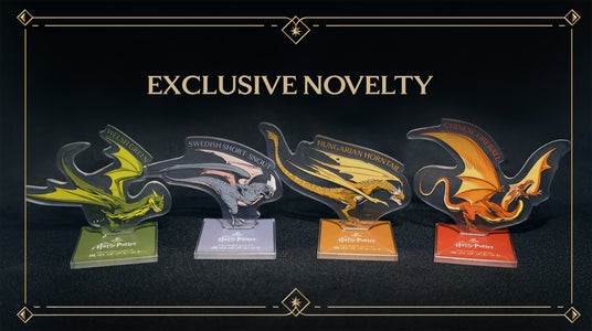 特別企画「炎のゴブレット」期間中、ご来場いただいたニュースレター会員様に、特典として三大魔法学校対抗試合の第一の課題で登場した「ドラゴンのアクリルスタンド」をプレゼントいたします。ご来場当日、インフォメーションデスクでニュースレターのメールをご提示いただくと、作品に登場する4種類のドラゴンを日替わりでプレゼント。この機会にぜひニュースレターにご登録ください。