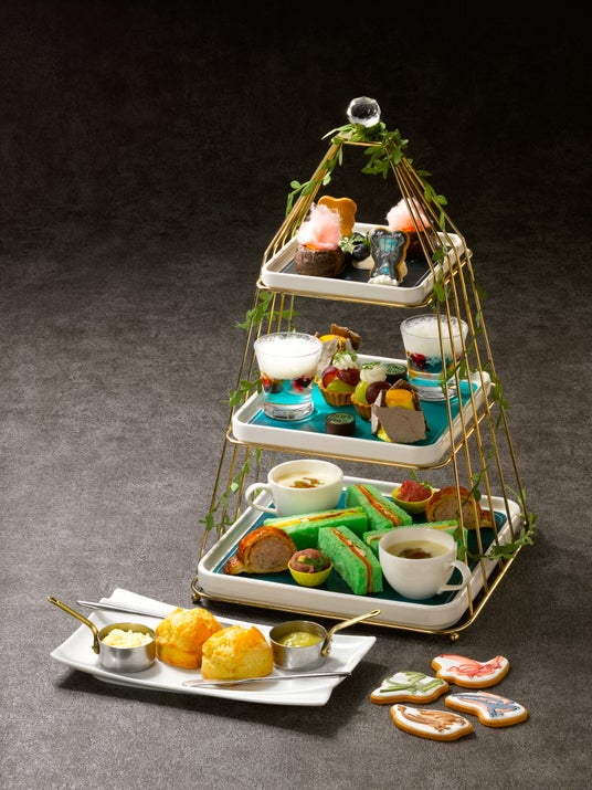 大人気のアフタヌーンティーは、「炎のゴブレット」をテーマにした「トライウィザード・トーナメント アフタヌーンティー」に。ハリーたちが挑んだ伝説の試合、三大魔法対抗試合の三つの課題をモチーフにした味わい豊かなスイーツやセイボリ一とともに、映画の名シーンが蘇ります。