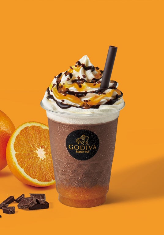 6. ダークチョコレート オランジェ(2021年発売)「ショコリキサーマイフレーバーコンテスト」で、一般投票とゴディバの審査により選ばれた大賞作品。考案いただいたアイデアをもとに、大賞受賞者とゴディバのシェフが共同で開発を行い、商品に仕上げました。カカオが上品に香るダークチョコレートに、爽やかなオレンジソースを合わせたフローズンドリンクで、アクセントにザクザクとした食感のクランチをトッピングしています。