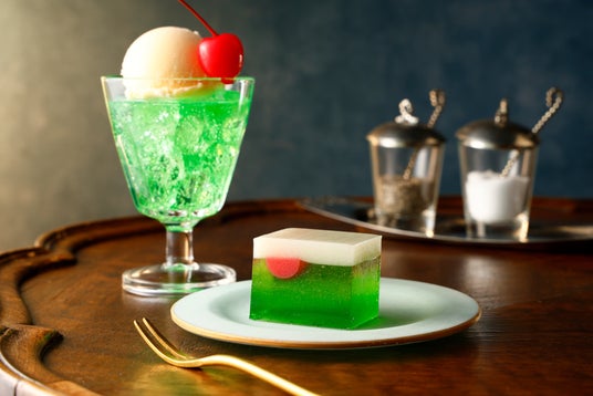 期間中、爽やかなメロン味の錦玉に、バニラ風味の羊羹を重ねた「クリームソーダ羹」や、