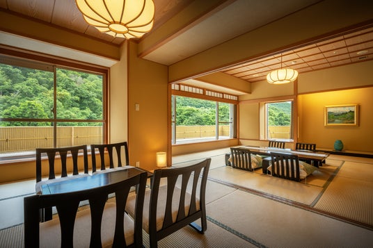 抽選会でペア宿泊券が賞品となる予定の「露天風呂付特別室(和洋室)」
