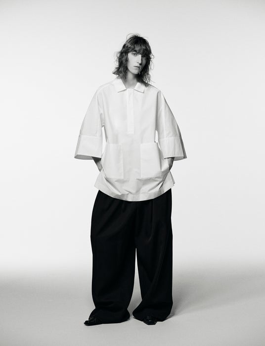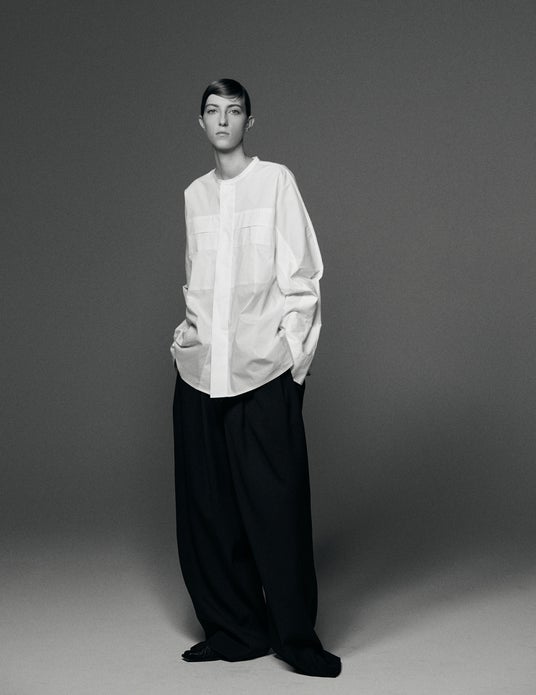 デビューコレクションでは、季節やシーンを問わずに着用できるエッセンシャルなアイテムとして、「白いシャツ」にフォーカスしました。シルエットが美しくタイプの異なる全8型のシャツが展開されます。 流れる川に身を任せるように身軽に旅をするという意味を込めて、各アイテムには世界の都市の名前が つけられています。日常のワードローブに欠かせないタイムレスな白シャツに仕上がっています。