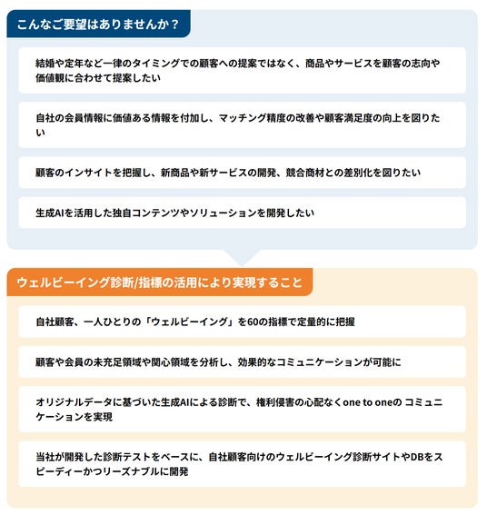 自社調査による「独自の60のウェルビーイング指標」と「生成AI」で実現