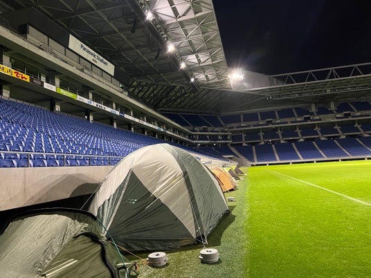 ・数時間前に選手達が躍動したスタジアムピッチサイドでキャンプができる!