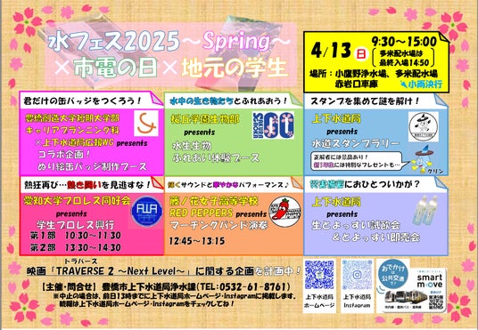 開催日は小雨決行ですが、天候などによっては中止の場合があります。豊橋市上下水道ホームページで発表します。