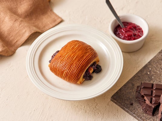 プリンチ(R)独自の「コルネッティ」生地はそのままに、生地の折り込み方を変えることで、より“バリバリ”感をお楽しみいただけるパンスイススタイルのコルネッティです。通常の「コルネッティ」では内側に折りたたまれる生地を外側にすることで、バリっとした食感が楽しめる焼き上がりにこだわりました。中のフィリングは、程よい甘さのチョコレートと、このために作ったプリンチ(R)オリジナルのラズベリージャム。甘さと酸味のバランスが、“進化系クロワッサン”のバリっとした食感と独特のハーモニーを生み出します。