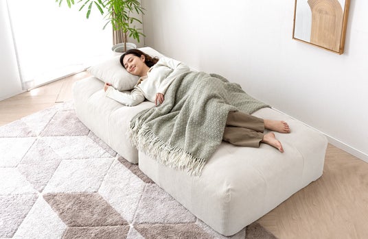 本製品は1パーツあたり幅90cm×奥行90cmの超ワイド座面を採用しており、あぐらをかいたり、ごろ寝をしたりするのにも十分なサイズ感でリラックスできる空間を提供します。