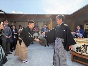 SOKO CAFE前 上田宗箇流 上田宗篁若宗匠によるはじまりを告げる銅鑼の音