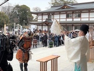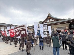 総大将の横山 雄二アナウンサー(中国放送)率いる一行は、正午にひろしまゲートパークを出発。大将の久保 竜彦氏(元 サンフレッチェ広島)が待つひろしまスタジアムパークを練り歩き、ペデストリアンデッキを経て広島城三の丸へ。武家茶道 上田宗箇流 若宗匠の上田 宗篁氏による野点の御点前で一服したのち、広島護国神社を正式参拝。広島城本丸では安芸ひろしま武将隊と、広島城のキャラクター しろうニャが登場。全員で高らかにかちどきの声を上げ、始まりの日を祝いました。