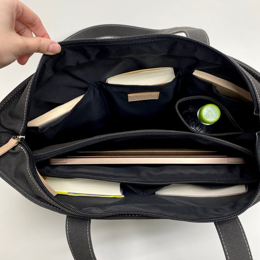 さらに、大切な本が飲み物の水滴で濡れないよう、バッグの内側にはボトルホルダー も設置。本と飲み物を安心して一緒に持ち運べる、読書家に寄り添った設計です。