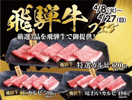 あみやき亭限定6店舗で「飛騨牛フェア」開催!~特選カルビ690円、上カルビ590円、味わいカルビ490円の贅沢3品を特別価格で~