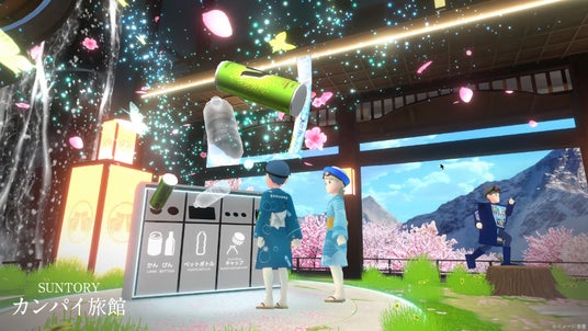 「SUNTORY カンパイ旅館」は私たちが大切にする「水」と日本の歴史や伝統をイメージした和風旅館を舞台にしました。本旅館では、サントリーがもつ国内外のさまざまな飲料商品を選んで乾杯をしていただくと、季節に合わせた演出が体験できます。さらに、乾杯したあとは容器を分別しサステナブルな社会に貢献。こうしたサントリー飲料商品を通した体験により、資源循環の取り組みの大切さ、未来に残したい日本の四季の美しさを感じていただきたいと考えています。