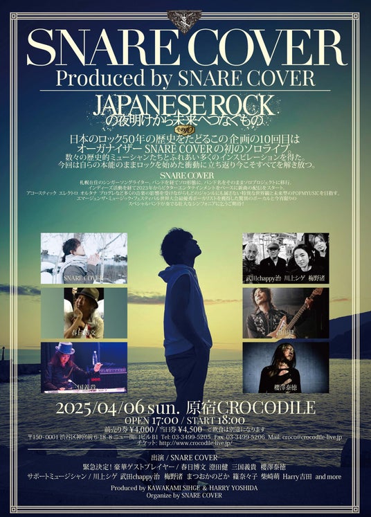 札幌在住シンガー SNARE COVER(スネア カバー)久々のワンマンに、豪華ゲスト緊急追加発表!日本のロックの歴史と未来をつなぐ スペシャルな一夜に