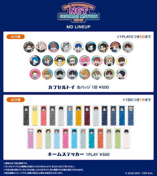「2025 NCT CHARACTER POP UP ‘NCT CCOMAZ NATION’」グッズを、4,000円(税込)以上お買い上げごとに特典としてランダムステッカー(全25種)を1枚お渡しいたします。