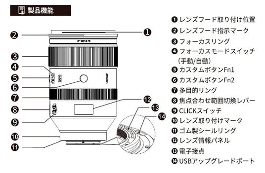 ・レンズ側面には3つの切り替えレバー、2つのカスタムFnボタン、2つのリング、ディスプレイが搭載され、ユーザーの撮影スタイルに応じた細かい調整が可能です。