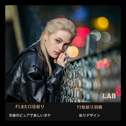 ・大口径絞りF1.8と11 枚羽根の絞りにより、よりきれいな柔らかく美しい円形のボケで、低光量の暗所の撮影でも優れた品質が得られます。