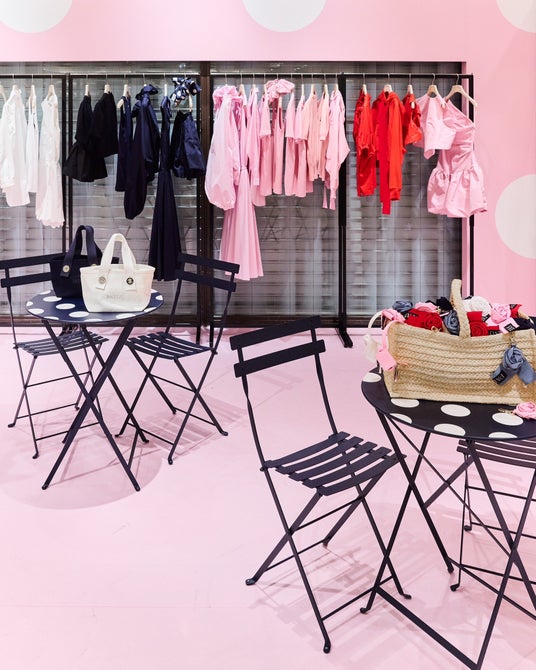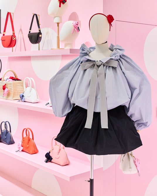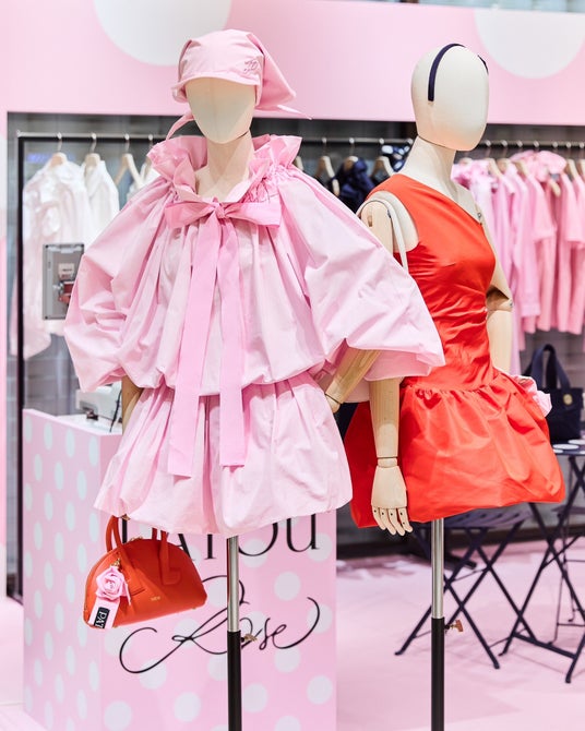 "ローズ(薔薇)"をテーマにした2025年春夏コレクションを展開するこのイベントでは、新作の洋服やバッグ、アクセサリーの新作コレクションをはじめ、日本限定アイテムのプレートやマグカップ、W Osakaとのコラボレーションによるバタークッキーなどをラインアップ。今シーズンのキーモチーフであるドット柄を目印に、カートや椅子、テーブルなどが並ぶカフェのような華やかな空間を演出しています。