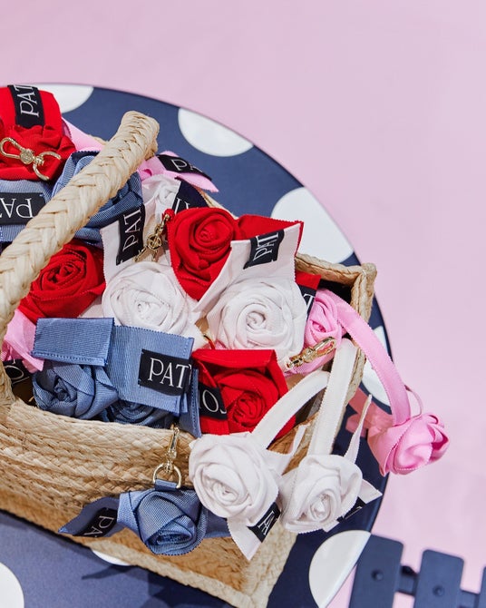 また「パトゥ」のクリエイティブチームが大阪文化服装学院と提携して生まれたアップサイクルアクセサリーをご紹介。パトゥのスリーピングストック素材を活用したグログランチャームとヘッドバンドの2種。また対象のバッグを購入のお客さまにはローズチャームをプレゼントいたします。この商品に関する売上の一部は「国際NGOプラン・インターナショナル」を通じて、支援を必要とする子どもや女の子へ寄付されます。
