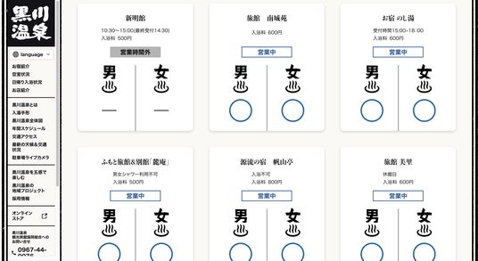 黒川温泉観光旅館協同組合ホームページからの宿泊予約決済サービスおよび温泉入浴状況可視化サービスの開始