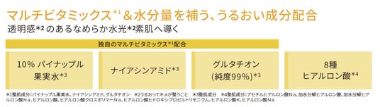 * 整肌成分:パイナップル果実水、ナイアシンアミド、グルタチオン
