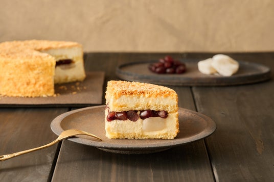 なめらかな北海道産レアチーズムースに、蜜煮にした北海道産小豆ともっちりとしたダイス状の求肥を忍ばせました。 仕上げに、程よい塩味のチーズクッキーとパイのクラムをまとわせ、和と洋の絶妙なハーモニーを生み出しています。